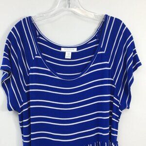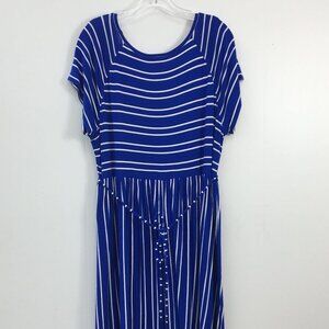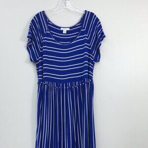 Motherhood Maternity Blue Striped Short Sleeve Midi Flowy Dress Size XL GREAT