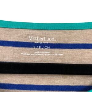 Motherhood Maternity Blue Tan Long Sleeve Striped Top Small