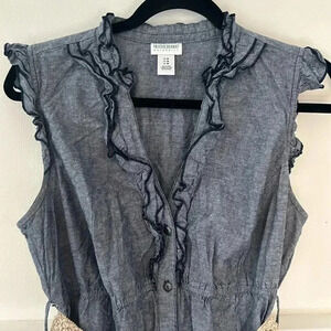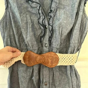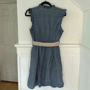 Motherhood Maternity Chambray Ruffle Dress with Tan & Brown Belt, size Medium