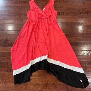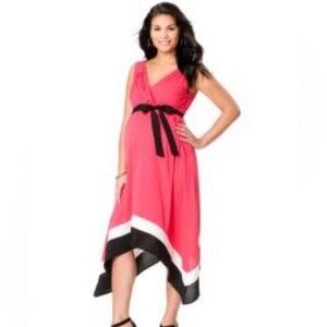 Motherhood Maternity Coral White And Black Color Block Flowy Dress Size Large