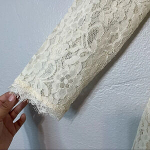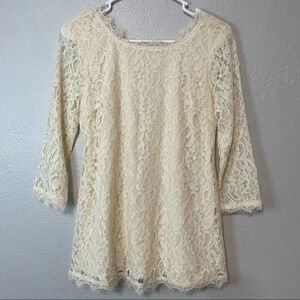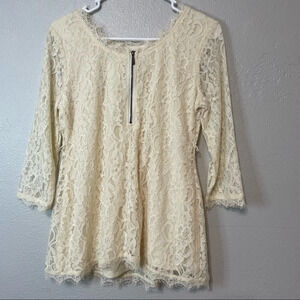 Motherhood Maternity Cream 3/4 Sleeve Blouse Lace Overlay