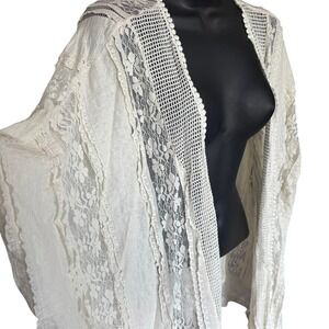 Motherhood Maternity Crocheted Cardigan Sz L XL Ivory Cottagecore Boho Feminine