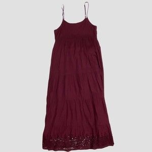 Motherhood Maternity Dress Size M Maroon Maxi Sundress Tiered Eyelet Boho