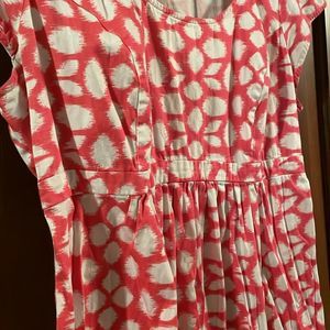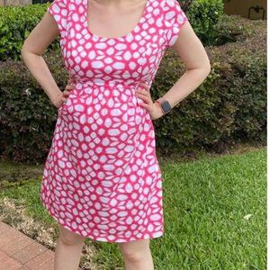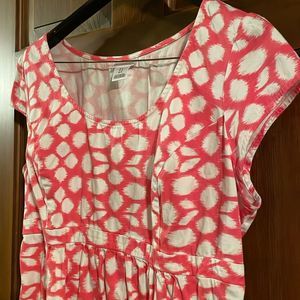 Motherhood Maternity Dress pink coral w white paint stroke dots size L, elastic