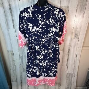Motherhood Maternity Floral Wrap Dress Navy/Pink Sz Large | MSRP $50