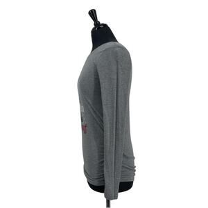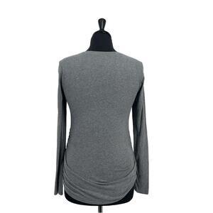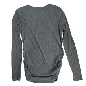 Motherhood Maternity Women’s Grey Graphic “Tis the season to be pregnant” Ruched Side Long Sleeve Shirt Size Small S
