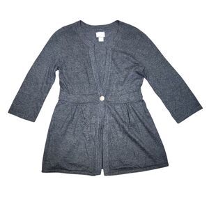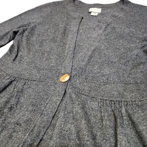Stylish gray cardigan. Features a single button closure. Perfect for layering. Great for post maternity wear too!