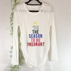 Christmas Holiday Tee Grows with You 40 Weeks Jersey Knit Mother Mom Mama Mommy Baby Pump Kid Cargo Casual Work Legging Jean Cropped Yoga Linen Capris Trouser Wide Straight Bottom Top Blouse Short Sleeve Front Cloth Outfit Outerwear Activewear Non-Binding Comfort Waistband Expandable Belly Flat Panty Seam Gusset Contoured Semi-Sheer Cotton Blend Spandex Support Washable T-Shirt
