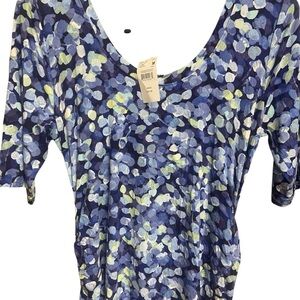 This brand new maternity dress has a scoopneck and half length sleeves. It is designed to hit at the knee and has. Ruching on both sides to accommodate that growing belly. Material is super soft and super stretchy.
