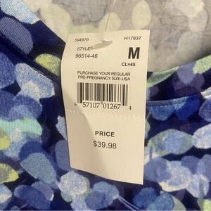 NWT Motherhood Maternity Midi Dress Size M Stretch Blue Floral Side Ruching Shower
