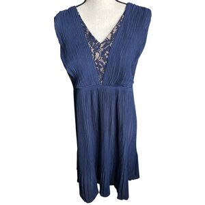 Motherhood Maternity Navy Cocktail Dress Lace Detail Pleated Semi-Formal Lined S