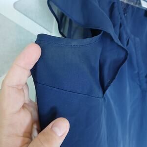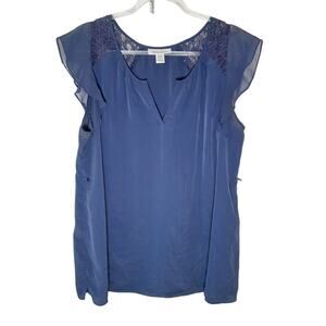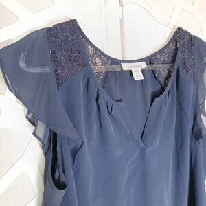 Motherhood Maternity Navy Lace Loose Fit Flowy Flutter Sleeve Blouse Womens XL Work Office Career V Neck Short Sleeve