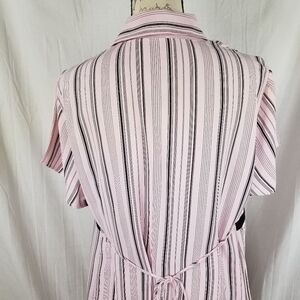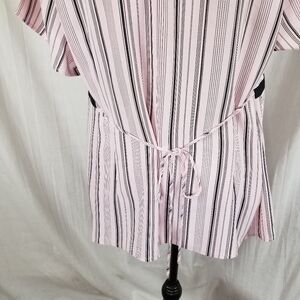 Pretty pink tie-in-the-back blouse with brown stripes and a brown satin ribbon that ties in the front! Perfect for work or play and will make the mother-to-be feel beautiful!