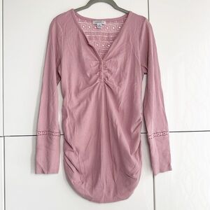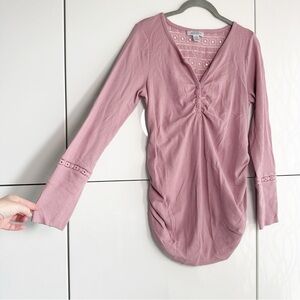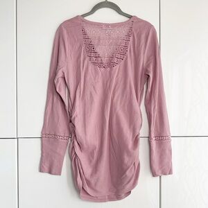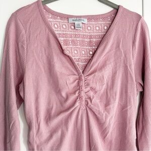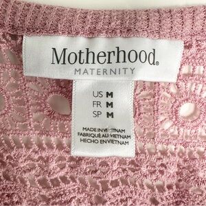 Motherhood Maternity Pink Waffle Knit Crochet Long Sleeve Top Size Medium