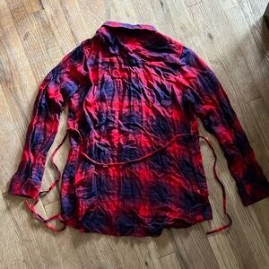 This casual button-down shirt from Motherhood Maternity features a striking red and blue color scheme, perfect for a relaxed yet stylish look. Made from soft, comfortable fabric, it offers a classic fit ideal for everyday wear. The shirt's design is versatile, making it a great choice for various casual occasions. In great PreOwned condition.