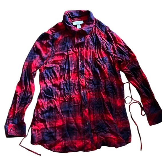 This casual button-down shirt from Motherhood Maternity features a striking red and blue color scheme, perfect for a relaxed yet stylish look. Made from soft, comfortable fabric, it offers a classic fit ideal for everyday wear. The shirt's design is versatile, making it a great choice for various casual occasions. In great PreOwned condition.