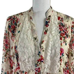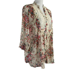 Motherhood Maternity Sheer Floral Button Up Flowy Blouse Size Medium Lace Accent
