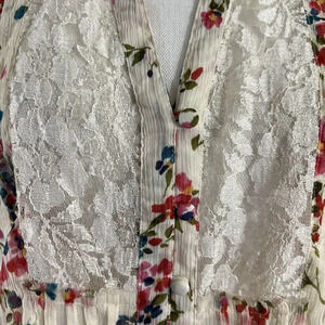 Motherhood Maternity Sheer Floral Button Up Flowy Blouse Size Medium Lace Accent.