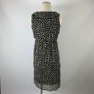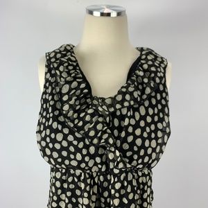 Black/white polka dot lined sleeveless dress. V-neck ruffle dress.