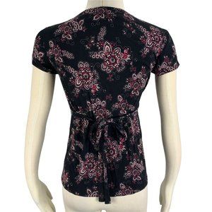 Motherhood Maternity Small Top Black Floral Tie Back Short Sleeve Stretch