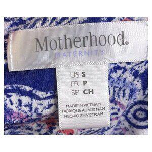 Motherhood Maternity Strapless Paisley Dress S Blue & Coral Rayon Blend