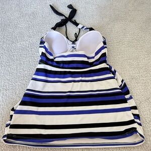 Motherhood Maternity Swim Bathing Suit Top Tankini Size Small Blue Black Beach