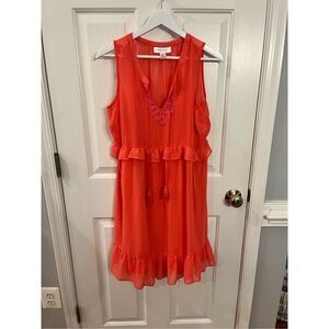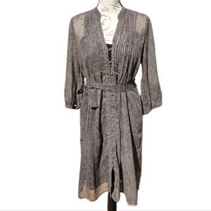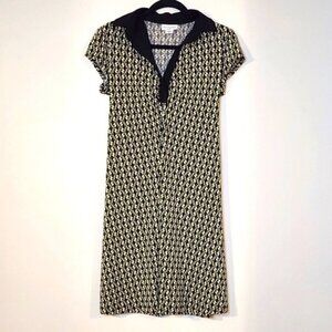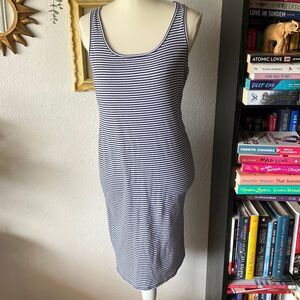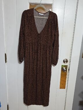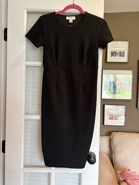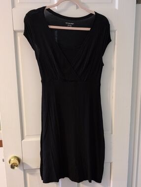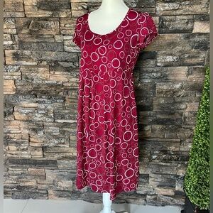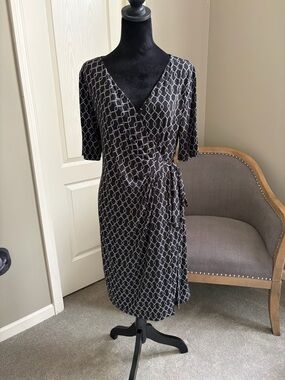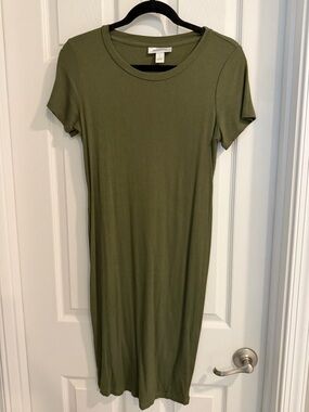 Elbow sleeve, knee length, tie around waist, comfy stretch material dress