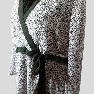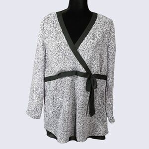 Classic feminine gorgeous top will give you such an air of grace and class while you carry your baby. Soft flowy fabric will not only look lovely but will feel lovely against your skin. Flattering criss-crossed wrap top offers the layered look with a black hem to match the detailing and bow. This top will be perfect anywhere -- travel on vacation, a casual or a formal occasion, a party (baby shower, anyone?)