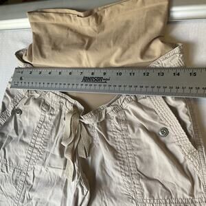 Motherhood Maternity Women Khaki Pants Size S Beige Button Drawstring 27" Inseam