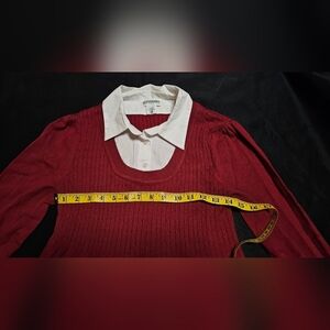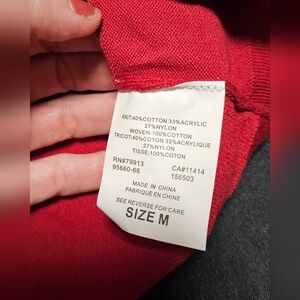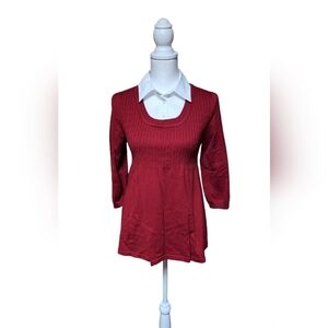 Get into the Christmas spirit with this beautiful red sweater from Motherhood Maternity. Made from a soft cotton blend knit fabric, this pullover sweater features a collared neckline and 3/4 sleeves with a casual sleeve type. The sweater comes in a size medium and is perfect for women who want to celebrate the holiday in style.