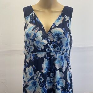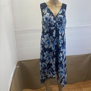 Motherhood Maternity Women's Sleeveless Floral Blue Wrap Midi Dress Size S Used
