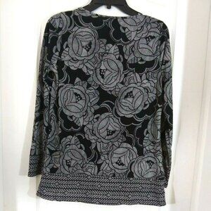 Motherhood Maternity Women's Small Top Pullover Gray Black Floral Longsleeve