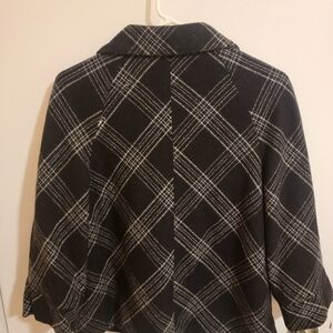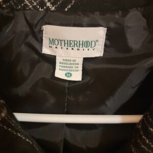 Motherhood Maternity Wool Blend Jacket Medium Plaid Black Cream 3/4 Sleeve Y2k