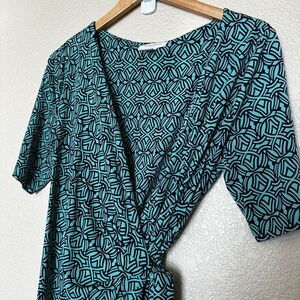 Motherhood Maternity Wrap Dress Green Celtic Pattern Large