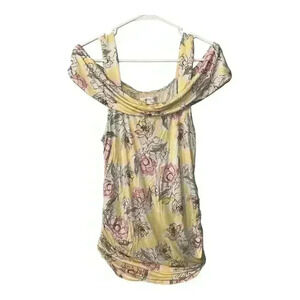 Motherhood Maternity Yellow Floral Cold Shoulder Top, Medium
