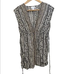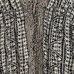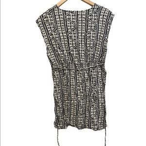 Stylish and comfortable, this Motherhood Maternity black and white geometric print top is the perfect blend of fashion and functionality for moms-to-be! Crafted from 100% rayon, this lightweight and breathable top offers a soft, flowy feel that drapes beautifully over your growing bump. The V-neckline flatters your shape, while the elastic empire waist and adjustable tie detail provide flexibility as your belly expands. The pattern features a bold boho-style geometric design that adds a chic touch to your maternity wardrobe, making it easy to dress up or down for any occasion.
