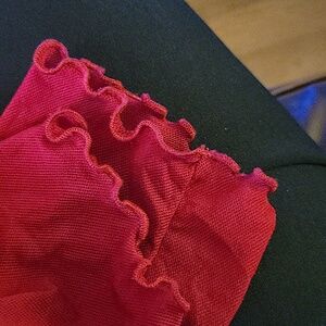Motherhood Maternity dark red pull on top. Long sleeves with ruffled cuffs. Empire waist. V neckline. Ruched sides. Stretch fabric. Machine washable. Size Large Approximate measurements 21" from pit to pit. 27" from shoulder to hem. Excellent pre owned condition. Smoke free and pet free home