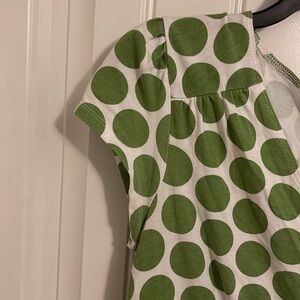 Motherhood Maternity midi size Medium white dress, green dots elastic faux wrap