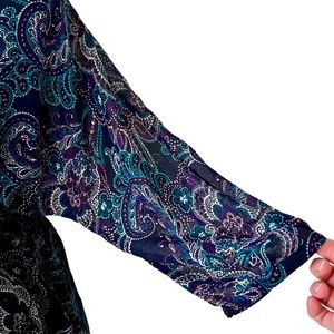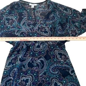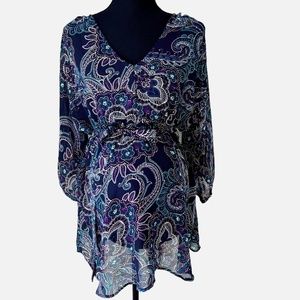 Motherhood Maternity semi-sheer navy paisley blouse w/integrated camisole size M