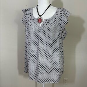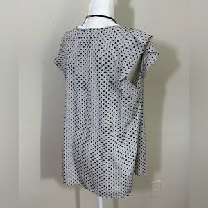 Very cute flutter sleeves allows some arm coverage. Soft lightweight fabric that is not see thru. A small slit at the front neckline. Longer style The armpit to armpit measurement is about 20”. The length is about 27”. Great top for warm weather or good for layering. No visible flaws. Any questions please ask and we will answer questions ASAP. O