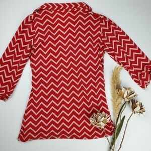 Motherhood Red Tan Chevron Faux Wrap Top Medium