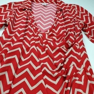 🔴 Motherhood Red Tan Chevron Faux Wrap Top Med