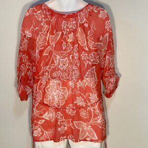 Motherhood SZ 1X Red & White lightweight peasant roll tab sleeve maternity top