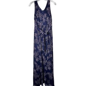 Motherhood Sleeveless Surplice Maxi Dress Maternity Medium Navy with Pink Floral