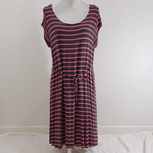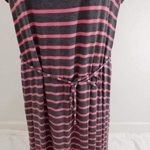 Motherhood Woman's Sz XL Dress Grey w Pink horizontal stripes