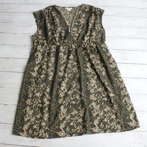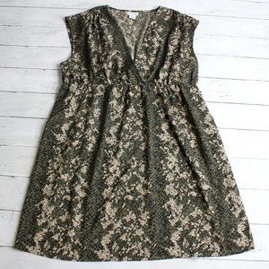 Motherhood Women's Maternity Dress Size L Green Tan Animal Print Pockets