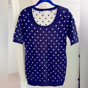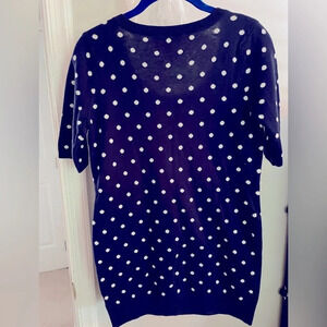 Motherhood Maternity size small sweater dress. Blue and white polka dots, short sleeves pullover dress.