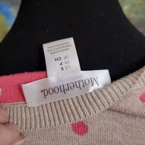 Motherhood tan/Grey with pink polka dot sweet sweater top short sleeves size S