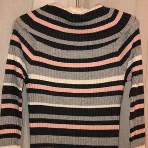 Motherhood Mat S Gray Pink White Horizontal Striped Ribbed Knit Dress