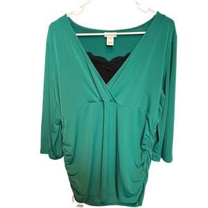 Motherhood Maternity 3/4 sleeve blouse green Large V neck black lace
